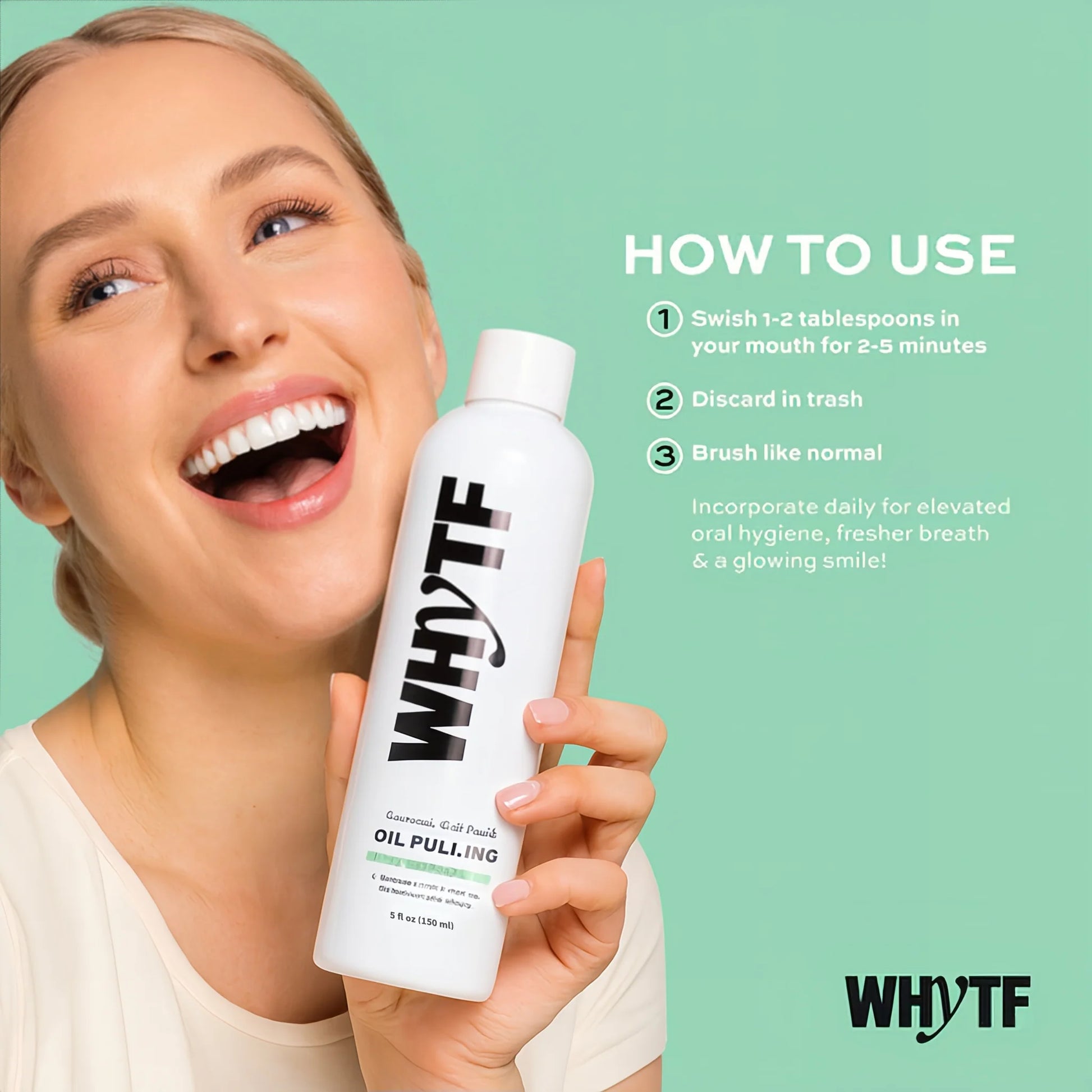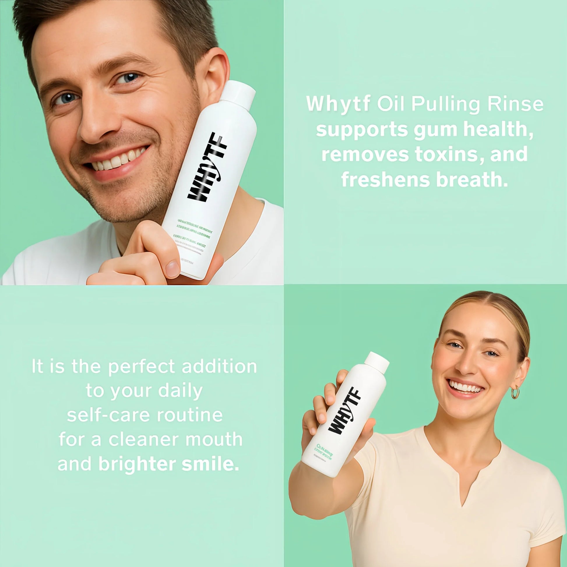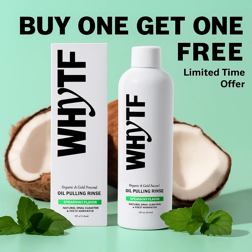 Are you tired of constantly chewing gum, popping mints, or swishing with harsh mouthwashes—only to have your bad breath return an hour later? It’s exhausting covering your mouth when you laugh, avoiding close conversations, or worrying about how others perceive you. After countless failed attempts, it feels like nothing truly works. That’s where WHYTF Organic & Cold-Pressed Oil Pulling Rinse changes everything. 🌿 With pure, cold-pressed organic oils, it naturally pulls away toxins, keeps your breath fresh all day, supports gum health, and gently whitens your teeth—without the burn or chemicals. Imagine waking up confident, speaking freely, and finally breaking free from the cycle of embarrassment to enjoy a smile you’re proud of every single day.