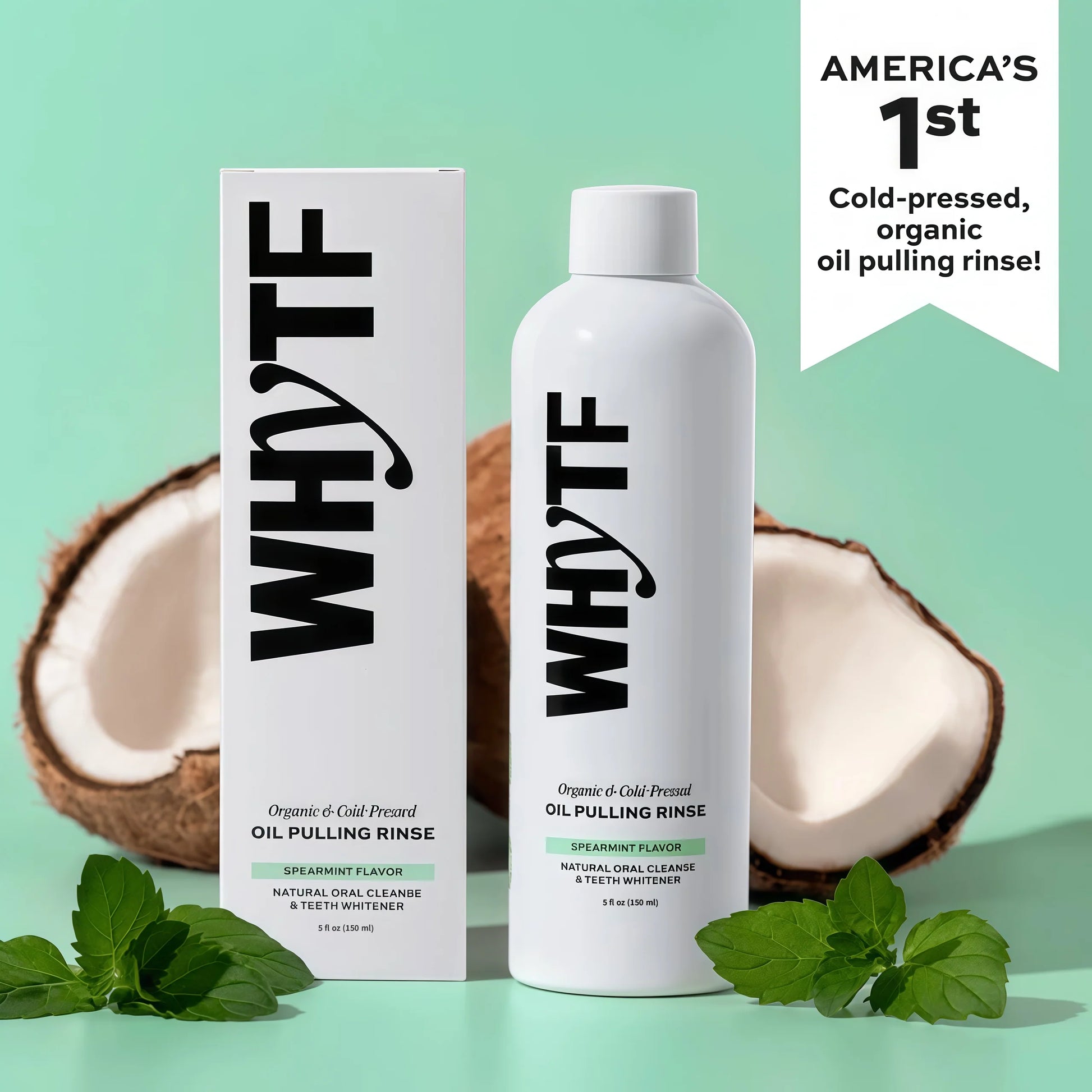 Discover the power of America’s 1st cold-pressed, organic oil pulling rinse—WHYTF Oil Pulling Rinse in refreshing spearmint flavor. Made with pure, cold-pressed organic oils, this natural rinse helps cleanse away toxins, freshen breath, support gum health, and gently whiten teeth without harsh chemicals. The antioxidant-rich formula preserves nutrients for maximum effectiveness, while the crisp spearmint finish leaves your mouth feeling cool, clean, and confident all day. Safe, non-toxic, and designed for daily use, it’s the natural way to detox your mouth and brighten your smile.